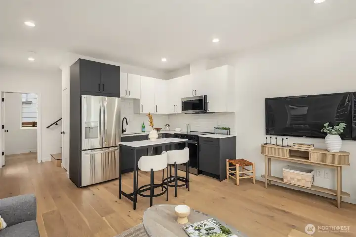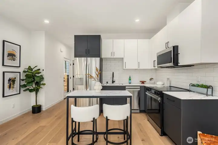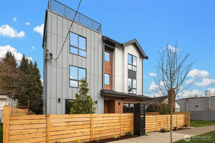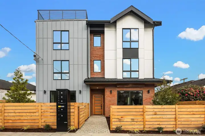 Welcome to this contemporary new-construction home, thoughtfully crafted by Greenway Homes. Modern design and everyday comfort come together on the open-concept main floor, highlighted by custom cabinetry, oversized windows, and seamless indoor–outdoor flow to a private patio. Extra heated storage closet that's big enough to be a home office! Upstairs features a spacious secondary bedroom and bath, along with a well-appointed primary suite offering vaulted ceilings and generous closet space. Additional highlights include Mini-Split AC, a fully fenced yard, and dedicated parking with EV charging. Moments from neighborhood shops and cafés, with Golden Gardens just minutes away for effortless beach walks and gorgeous sunsets.