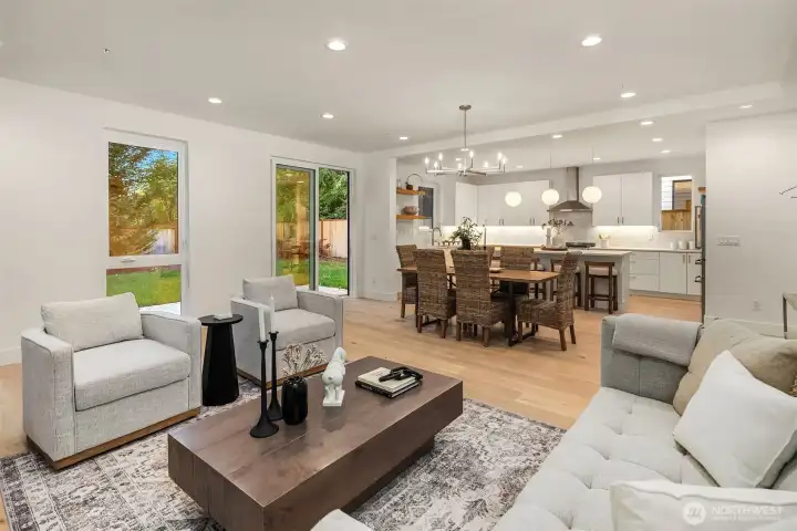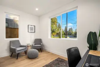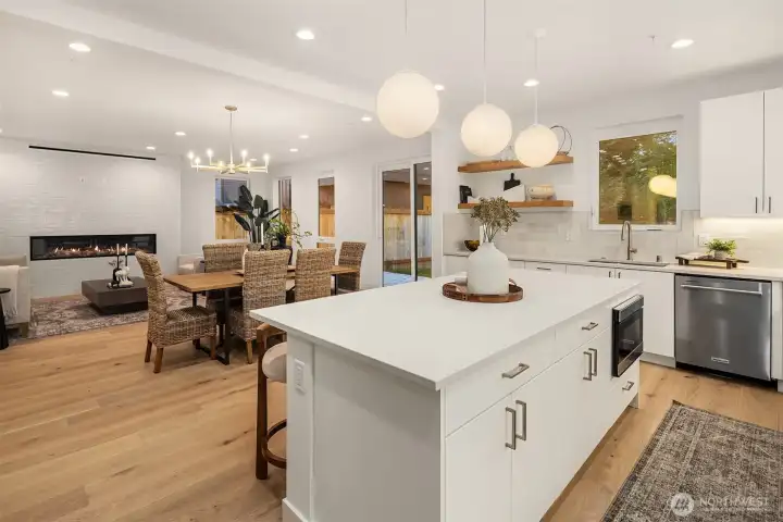 ID Construction Group presents this new construction Kirkland home. Enter into main floor with thoughtfully designed mudroom for ultimate organization. Great room offers large gas fireplace, chef's kitchen with bespoke matte quartz counters, and access to landscaped yard with patio. Private office completes this level. Upstairs, find your family/bonus room, two additional bedrooms & full bath, plus dedicated laundry with included w/d. Expansive primary suite includes ample room for king bed, two walk-in closets & full bath with heated floors. 2-car EV-ready garage. Near to Juanita lakefront parks & McAuliffe Park, plus top-rated Lake Washington School District, & just 10 min to Totem Lake Village.