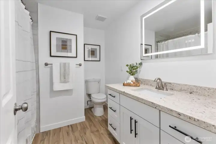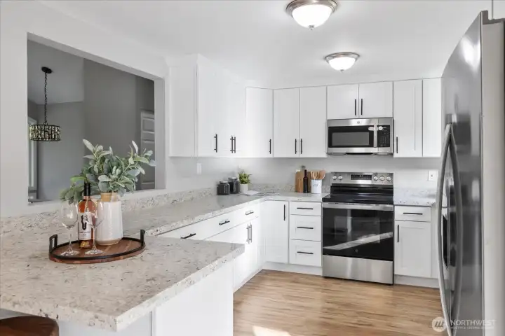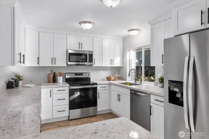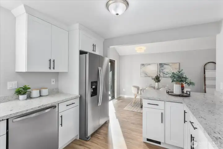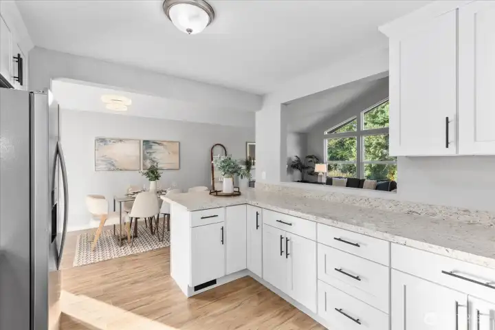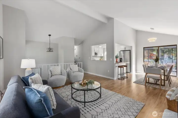 Welcome to this stunningly updated 4-bed, 2.75-bath split-level in the sought-after Kentridge community. This home is turnkey, featuring vaulted ceilings, dual fireplaces, and new flooring. Extensive renovations include a brand-new chef's kitchen (quartz/SS appliances) and remodeled baths. The bright, finished daylight basement offers flexible living. Outdoor living is superb: large deck, sunroom, unique rooftop deck, and a fully enclosed backyard with new fence. Exceptional parking: 2-car garage + covered carport for 4+ vehicles/RV/boat. This is a must see!