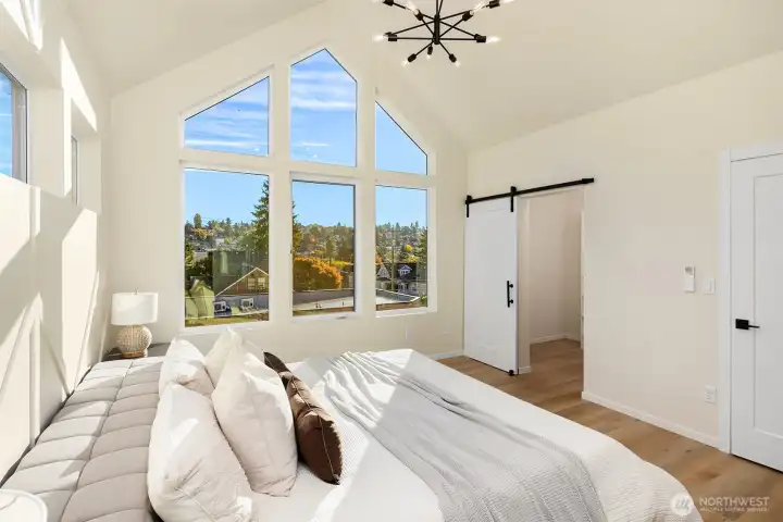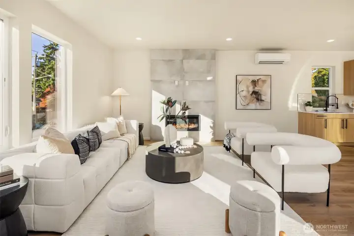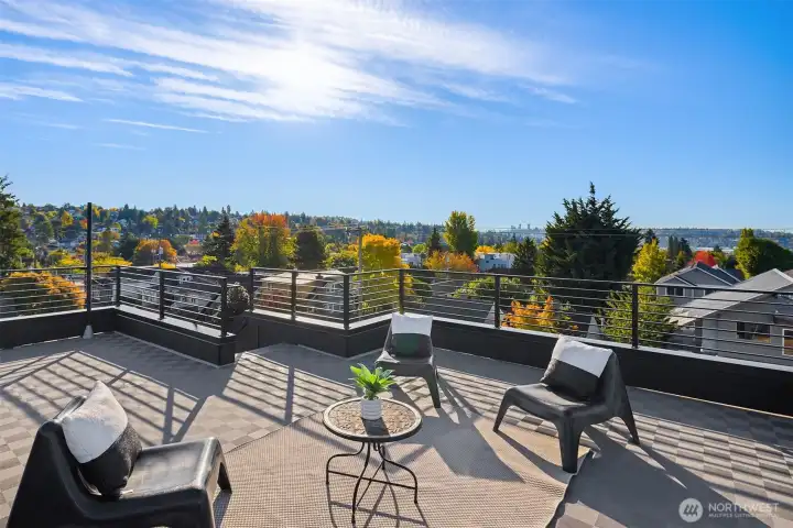 Welcome to this brand new 4 bedroom home by local builder New City Homes. On your main floor, a light-filled, spacious kitchen, dining, and living area opens to a private balcony. Upstairs, find three bedrooms, including a spacious primary suite with a walk-in closet and elegant bath. Continue up to the rooftop deck to take in sweeping views of the Olympic Mountains and downtown skyline. A lower-level guest suite with its own bath offers flexibility, while a convenient mudroom connects to the attached one-car garage for easy everyday living. Enjoy proximity to great restaurants, shopping and recreation in Ballard and Phinney Ridge & Green Lake.