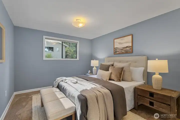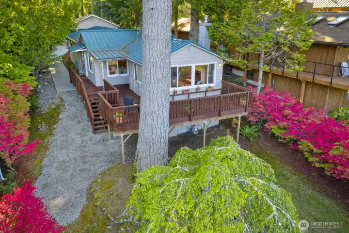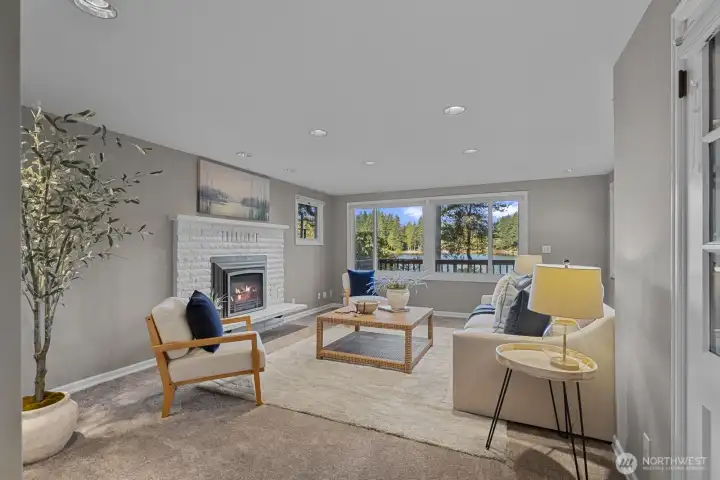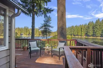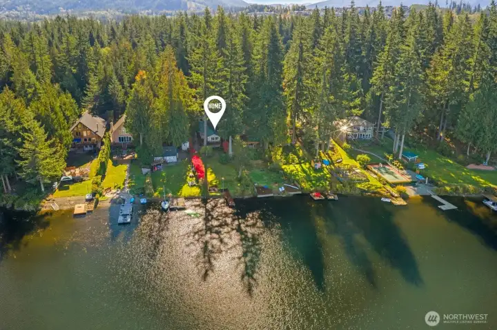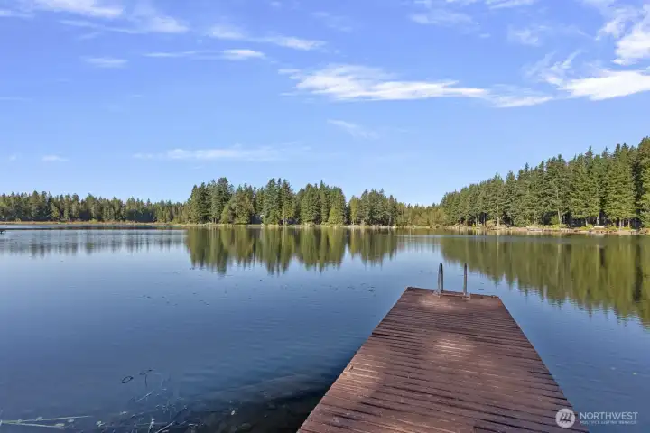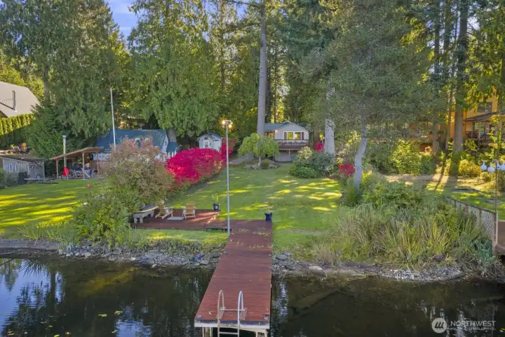 Imagine life on the lake! Discover this Lake Alice treasure offering 50 feet of prime no-bank waterfront with a private dock. Sited on a sunny lot with panoramic views, this serene retreat invites you to swim, fish, or kayak on the quiet, non-motorized, spring-fed lake. A winding drive through evergreens leads to your one-level lakeside home, designed for comfort and relaxation. Enjoy an expansive view deck perfect for entertaining and a cozy living room with fireplace overlooking the water. Detached garage currently used for storage can easily be converted back. Feels a world away, yet just minutes to I-90, Bellevue, and Seattle. Highly rated Snoqualmie Valley schools. Pre-inspected. A rare find!
