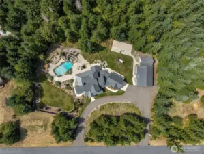Built in 2018, this dreamy craftsman style farmhouse is located on a quiet road with nearly 10 acres of private woodlands! No HOA! 3200+ sq ft & 4 bedrooms in the main. The kitchen has SS w/ chefs range, double ovens, a walk-in pantry, & 2 dishwashers. Main floor primary w/ a spacious walk in closet w/ built-ins. Gorgeous vaulted ceilings in the living room w/ reclaimed wood from a 100 yr old barn. Big shop w/ heat pump, 16x24 storage shed, guest house w/ kitchen, bath, & laundry. Custom in-ground pool & hot tub w/ a water slide, .5 bath, patio & a covered outdoor wet bar w/ tap! 2 car garage w/ work bench & multi purpose room above! Auto backup generator & electric car charger. Garden space in the fully fenced backyard & extra parking.