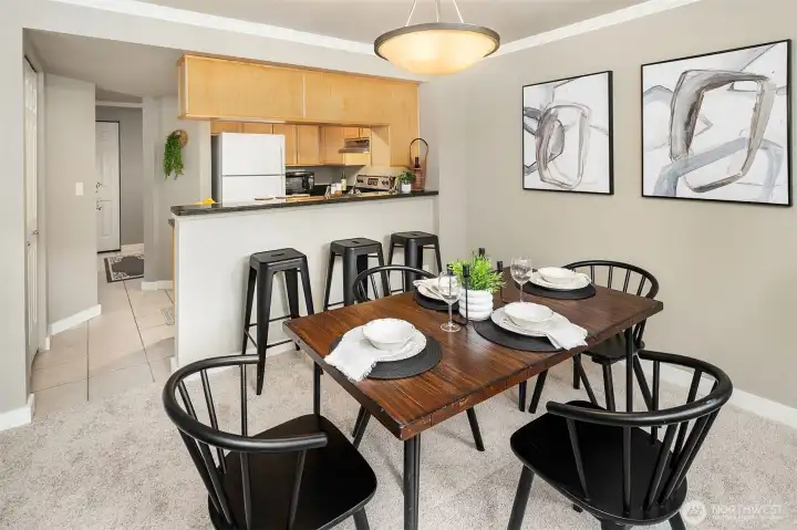 Investor Alert! Well-maintained one-level condo has new carpet & excellent value in a prime Juanita location. Great opportunity to add your personal touches & unlock this property's full potential. Kitchen has abundant cabinetry, granite counters & breakfast bar. Dining rm overlooks the lawn. Living rm has cozy frpl & slider to covered patio w/storage. Primary bdrm opens to full bath. Second bdrm is an ideal home office. Community amenities incl. clubhouse w/seasonal outdoor pool. Easy location-blocks to dining, shopping, Lake Washington beaches, walking trails, Totem Lake Village & minutes to vibrant DT Kirkland. Convenient lifestyle & investment opportunity in one of Eastside's most convenient neighborhood! No rental cap & pets allowed.
