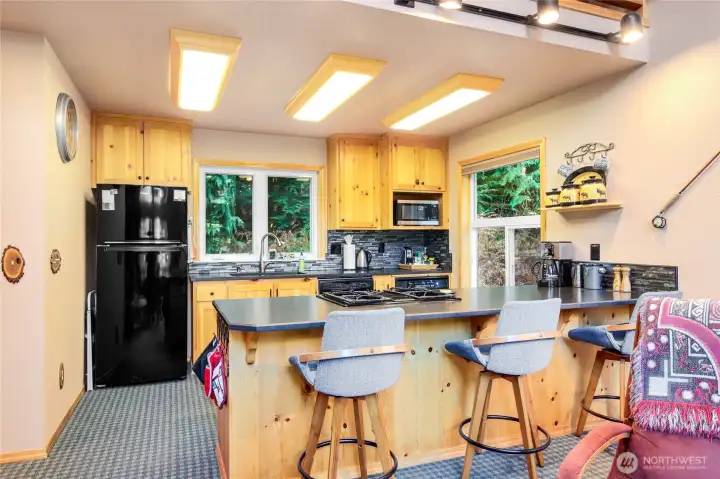 Experience the best of mountain living Snoqualmie Pass has to offer. 3-bed, 2-bath single-family home tucked on a quiet cul-de-sac just a short, easy walk to the chairlift. Updated kitchen with new countertops flows into warm, comfortable gathering spaces ideal for hosting, relaxing, and enjoying time with friends after a day outdoors. A stunning wall of windows floods the vaulted ceiling great room with natural light while showcasing panoramic views of snow-capped peaks and snow-laden evergreens. Hiking, biking, cross-country skiing, and snowshoeing accessible right from your doorstep. This custom architecturally designed home comes furnished and ready for your intended use, perfect for a year-round mountain retreat.