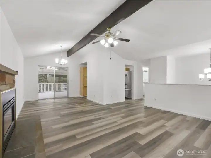 Beautifully maintained split-level home offering nearly 2,300 sqft just minutes from JBLM. Recent upgrades include a newer roof, fresh interior/exterior paint, and new vinyl plank flooring.The upper level features 3 bedrooms, a bright living room, dining area, updated kitchen, and a spacious covered deck. Downstairs offers 2 additional bedrooms, a 3/4 bath, large family room, and versatile rec room—perfect for entertaining, a home gym, or guest space. An oversized 550 sqft garage with high ceilings provides excellent storage or workshop potential.