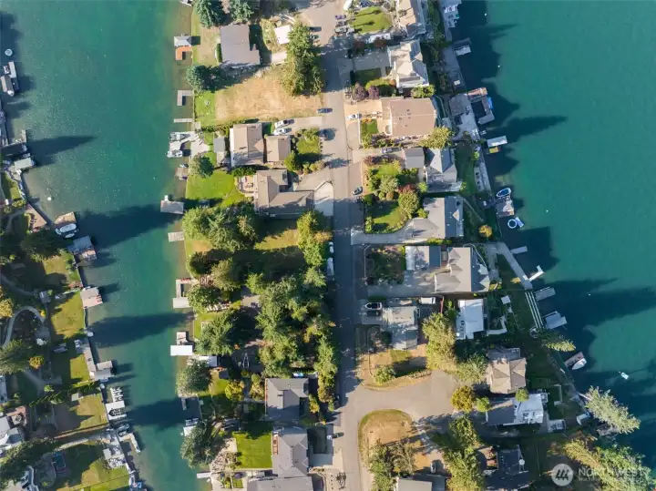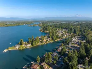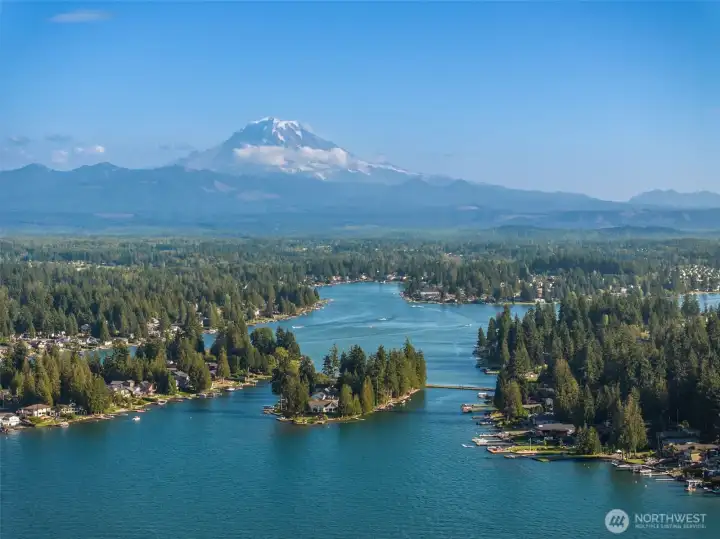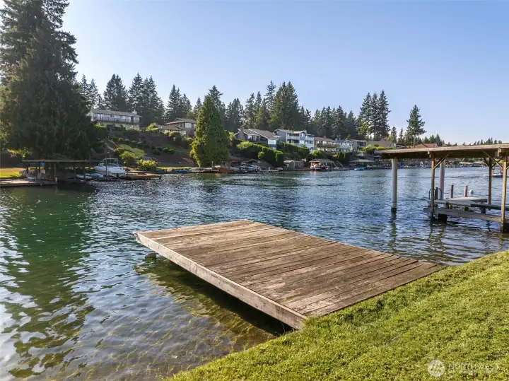 Lake Tapps waterfront vacant land on Jenks Point, west side, and tucked in a more protected pocket away from the open water. This 12,600 sq ft lakefront lot delivers the real deal: your own shoreline, bulkhead, private dock, and electricity already onsite. Morning coffee on the dock, paddle straight from your own spot, boat days that start at home, and sunset hangs that never require packing up or fighting for access. Quiet dead-end road neighborhood, Sumner Bonney Lake School District, and then the bonus: additional private access to Jenks Park with gated entry, sandy beach, boat launch, plus tennis and pickleball courts. Rare chance to lock in true Lake Tapps frontage with extra amenities built in.