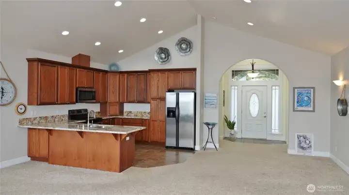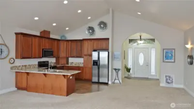 EASY LIVING on the BAY! Beautiful Bay Front home w/ bulkhead ~ Gorgeous views of the Bay, Olympic Mountains, Mt Rainier. Walk up to the rock covered front entry. Step into this 1,685 sq.ft. easy 1-story living w/ Open Floor Plan ~ light & bright w/ Vaulted Ceilings & lots of windows facing the Bay. Large Kitchen w/ slab granite counters, SS appliances, pantry closet, eating bar. Desirable split floor plan w/ the Master on one side & the 2 Guest BDs on the other side. Spacious Master BD w/ a slider to the Covered Rear Deck, walk-in closet, 5-piece en-suite Bath. The Guest BD in front has a bay window; the other has a slider to the HUGE Rear Deck, which is great for outdoor living. Bulkhead was shored-up/made stronger in 2018. Fenced Dog Run.