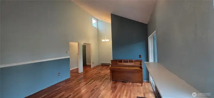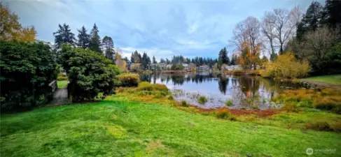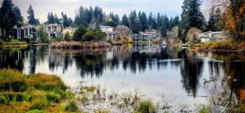 Perfect first home! This bright top-floor 3-bedroom condo feels open and welcoming with vaulted ceilings, sunny southern exposure, and a private balcony. Cozy up by the wood-burning fireplace in winter, and enjoy easy-care engineered hardwoods in the main living spaces. The kitchen offers great storage and a sunny window over the sink. The primary suite has its own bath, plus two more bedrooms and a full second bath—great for guests or a home office. In-unit laundry, pool, tennis court, clubhouse, and lake access included. Close to I-5, Boeing, shopping, and dining.