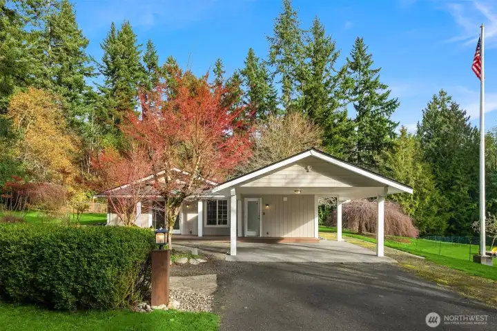 Experience the essence of Northwest living at this enchanting country retreat just minutes from downtown Poulsbo! This stunning 2-bedroom, 2-bath rambler blends modern sophistication with timeless charm. Sunlight fills the open layout, showcasing a beautifully updated kitchen and inviting great room—perfect for gatherings and everyday comfort. Set on over 2 acres of lush, usable land, enjoy powered stalls and a tack room ready for your horses or a spectacular entertaining space, plus grazing pastures, a chicken coop, RV parking, and gardens. Country elegance meets convenience—only a stone’s throw from Poulsbo’s vibrant heart. Come see it today!
