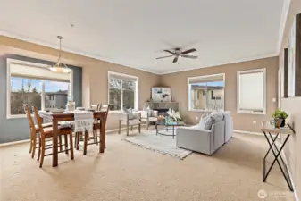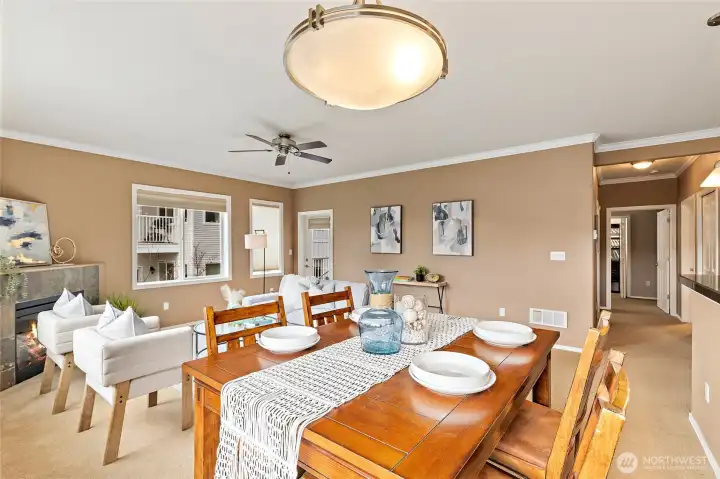Welcome to this beautifully maintained Bothell condo, offering comfort, convenience, and modern style. This one-floor home features a spacious living and dining area with abundant natural light and a serene greenbelt view. The well-appointed kitchen provides ample counter space for everyday ease. Bedrooms are generously sized, and the bathrooms are thoughtfully designed for comfort and functionality. Enjoy a sizable private balcony, a garage with two parking spaces in front, and extra storage. Conveniently located near shopping, dining, parks, and major commuting routes. Community amenities include on-site management and a fitness center