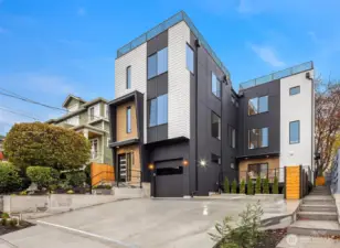 From Modern Homes, a new Ballard 3 home community. Flooded with natural light, this home boasts contemporary finishes, thoughtful design elements. and functional open concept living space. Primary suite enjoys total privacy, occupying entire top floor. Expansive rooftop deck is a serene oasis perfect for a low maintenance outdoor escape. Situated moments from the heart of downtown Ballard: immerse yourself in the vibrant culture of local breweries, the Ballard Farmer's Market & the Shilshole waterfront. Convenience meets luxury with assigned off-street parking and nearby transit stops, ensuring effortless commuting.