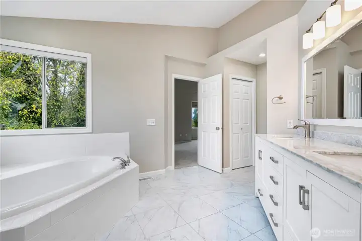 Welcome to Stratton Hill, a sought-after community known for quiet streets and top-rated Mukilteo schools. This well-maintained 5 BR/2.75 BA home offers soaring ceilings, abundant natural light, and an expansive layout for gathering or relaxing. Recent enhancements include solar panels, newer roof, heat pump with A/C, updated gas fireplaces, and a fully fenced backyard. The kitchen features quartz countertops and stainless steel appliances. Upstairs, the renovated primary suite provides a spa-like retreat. Enjoy a peaceful greenbelt backdrop, raised garden beds, and apple and blueberry trees, along with peek-a-boo views of Mount Baker and the bay. Pre-inspected and minutes to Boeing, ferries, parks, and dining.