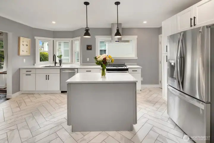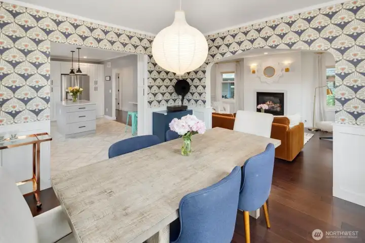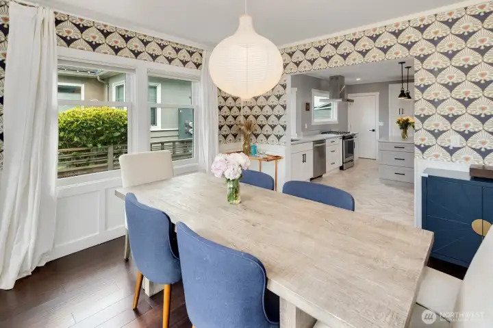 Beautifully restored 1928 Craftsman on a quiet Magnolia street, where timeless charm meets modern design. Thoughtful custom updates include statement wallpaper, shaker cabinetry, herringbone tile, & premium appliances. Main-level features a bright living & dining room, chef’s kitchen, powder room, & vaulted primary suite with spa-like bath & heated floors, walk-in closet, & private deck. Upstairs offers two large bedrooms, full bath, & storage. Lower level includes a media room (or 4th bedroom), a hidden speakeasy behind a built-in bookshelf, laundry room & abundant storage. Landscaped yard + 1-car garage w/ alley access & DADU potential. With custom finishes, flexible spaces, & rich character throughout, this home is truly one of a kind.