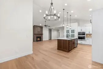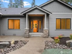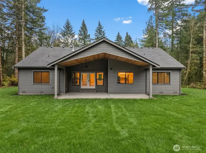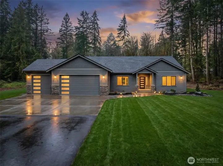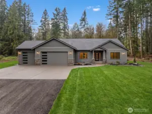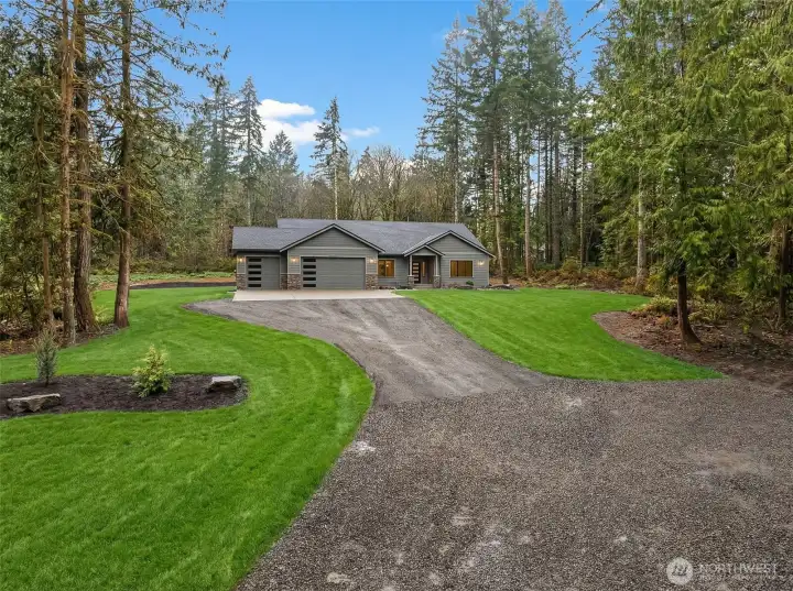 Brand new 2462 sq ft open concept rambler built by Eagle Homes on 5.10 acres very peaceful and unique setting. Home features 3 bedrooms 2.5 bath, den/office, plus large bonus room and 3 car garage. Vaulted ceilings, gas fireplace, forced air heating w/heat pump, fully wrapped windows, great lighting throughout, lots of storage, painted mill work, hard wood floors and tile floors, large laundry room w/sink and cabinets. Gourmet kitchen w/quartz counter tops, SS appliances including a 36" gas professional range plus built in electric wall oven, cabinet lighting. Fully landscaped yard. Large covered patio makes enjoying the outdoors possible all year! Shared well and gravity septic. Move in ready 100% completed. Lots of room to build a shop.