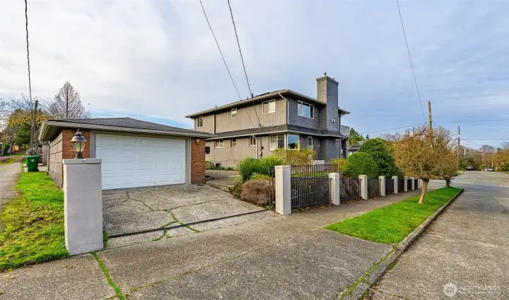 Step into this beautifully maintained, pre-inspected 3-story Seward Park home featuring 4 bedrooms and 3.25 baths on a spacious, fully fenced corner lot. Alley access provides additional parking, and a detached 1-car garage adds convenience. Surrounding garden spaces create a serene outdoor retreat. The master suite boasts a gas fireplace, sitting room, and private deck with stunning water and mountain views. A lower-level family room offers abundant storage and flexible living space. Just blocks from Seward Park, Lake Washington, shops, and with easy access to downtown Seattle, where everyday walks, local favorites, and a strong sense of community make this location truly special.