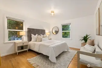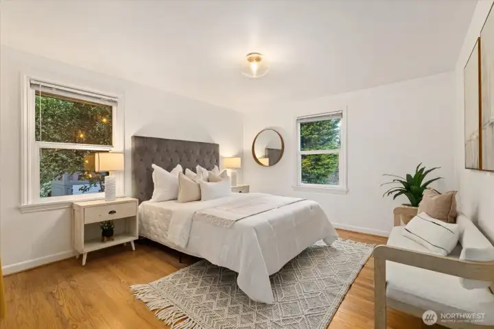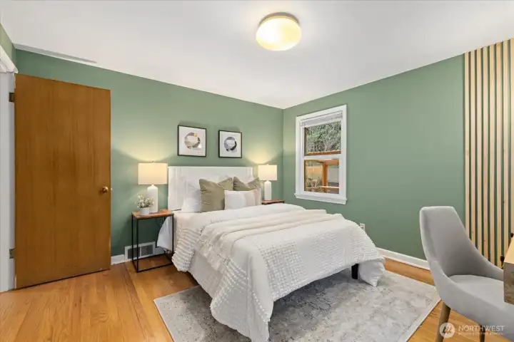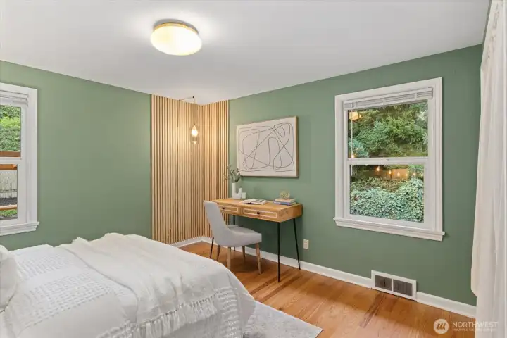 Charming mid-century home on a sunny corner lot with warm oak floors, two fireplaces, and updated electrical, plumbing & windows. Settle in before spring to enjoy the endless garden spaces & sprawling fully fenced backyard-complete with a deck made for entertaining. The main level features a sun drenched kitchen with eat-in area, 2 generous bedrooms, & a full bath. The spacious lower-level room was previously used as a primary suite, but offers endless flexibility as a family room, office, bedroom, or guest-ready bonus space (complete with a murphy bed). The large utility room includes a half bath, laundry area, and ample room for storage, a home gym, or even a second bonus room. Coffee, restaurants, and shopping are just a short walk away!