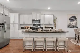 Charming, move-in ready home effortlessly blends a commuter’s dream with peaceful living. Walk to Whole Foods; Just blocks from Alderwood Mall, Costco, Light Rail Station; Quick access to I-5, I-405. This 3B 2.5B home situated next to lush greenery & trails to playground, offers many appealing features. Inviting entry opens to open-concept living space w/gourmet kitchen, featuring a large slab granite island, gas cooktop, pantry; Gas fireplace warms your winter; Enjoy year-round views from serene back patio; Main floor half bath. Upstairs, bright primary suite w/private 5-piece bath & generous closet; plus two bedrooms, full bath, and laundry. Attached 2-car garage. Heat pump provides efficient heating & AC. Inspected—Don’t miss this one!