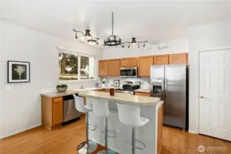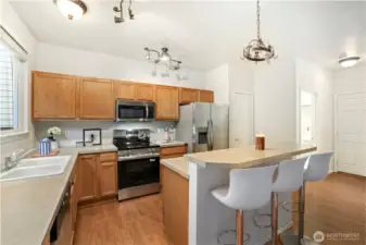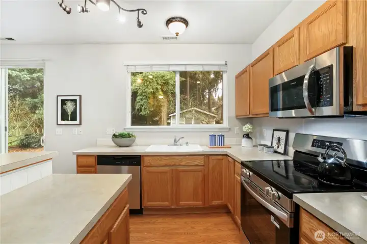 Bright, open, and beautifully refreshed, this 3-bedroom, 2.5-bath home in a gated community lives better than new. Recent updates—including fresh interior paint, new carpet, and brand-new appliances—make it completely move-in ready. The airy floorplan features soaring ceilings, a see-through gas fireplace, spacious bedrooms, and a generous primary suite. The kitchen stands out with its island bar and new appliances, creating an ideal space for cooking and entertaining. Step outside to a private, fully fenced backyard with a cedar shed, patio, and ample room for gardening, play, or relaxation. Enjoy the charming front porch and a prime location close to Costco, SH Mall, dining, schools, and parks. A true turnkey home ready for you to love!