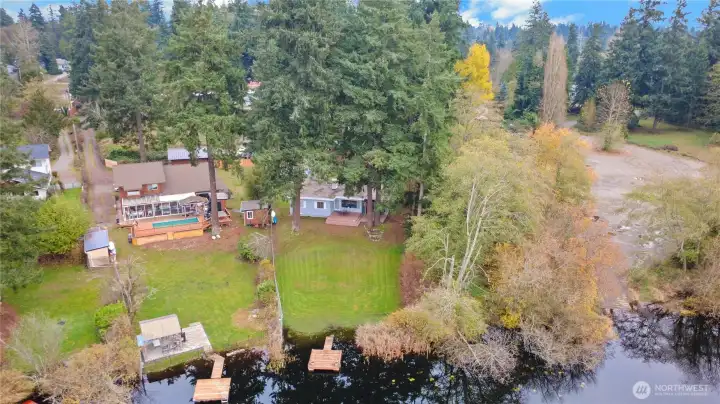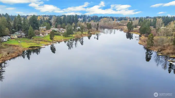 Great opportunity to live on quiet Lake Dollaff with a detached ADU on .6 acres. Main house is a 3 bedroom/ 1 bath. Inside the house has new paint, floors and corian countertops. Great views of the lake from the picture window in living room and 2 of the bedrooms. Outside has a deck facing the lake to relax or entertain with 55 feet of waterfront and a private dock to enjoy the water. Detached adu is 740 sqft with a Livingroom that has its own fireplace, eat in kitchen 1 bedroom and a .75 bath. All appliances stay between the 2 dwellings. Property is close to public boat launch, federal way commons, within 1 mile of new federal way light rail station, I-5 and 167.