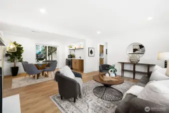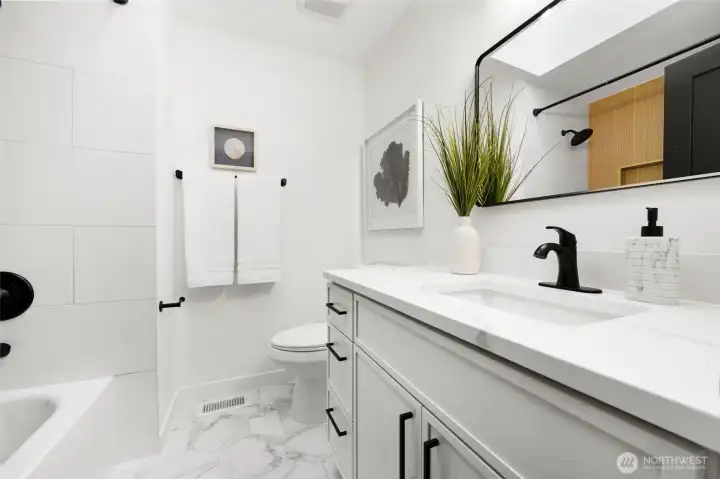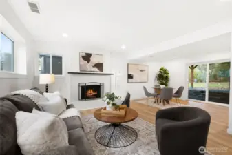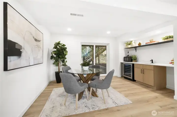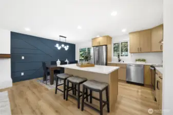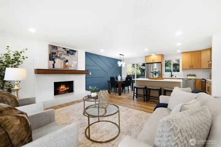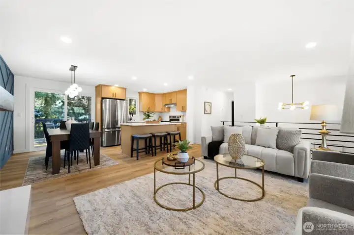 Freshly remodeled and move-in ready, this feel-good split-level sits on a quiet dead-end street! Enjoy new LVP flooring, fresh paint in and out, new roof, new windows, updated cabinets, quartz counters, stylish lighting, beautiful tilework, and brand-new stainless appliances centered around a welcoming sit-down island. The bright upper level offers 3 bedrooms and 1.75 baths, including a private primary suite. Relax by the wood-burning fireplace or step onto the new oversized deck. The lower level features a spacious rec room with wet bar and second fireplace, new laundry, half bath, and a large 2-car garage. A gigantic partially fenced backyard completes this fun, fresh home!