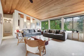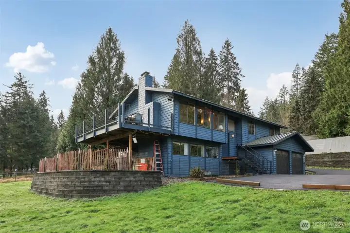 Located in the wonderful community of Woodinville, this classic split level home sits on an exceptionally rare, large lot. This three-bedroom two and a half bath home has an expansive, open concept living, dining area adorned with a custom cedar ceiling, two fireplaces and ample room in the downstairs living space for everyone. A new large deck that overlooks the extensive backyard as well as already placed framework for deck to be built from the primary bedroom. The oversized garage area has generous space for woodworking. This property comes with its own generator and new 50 year roof with warranty!