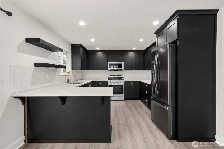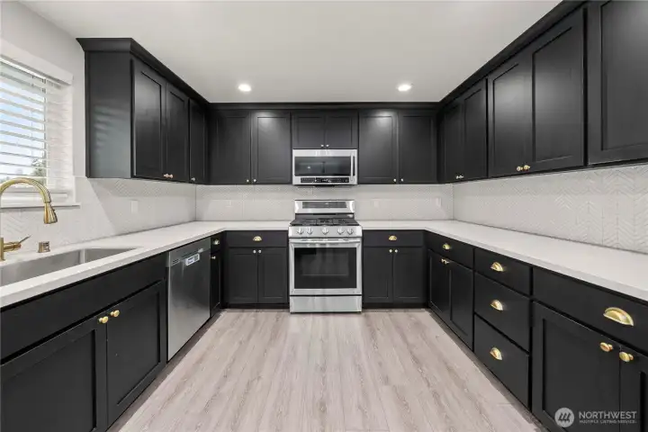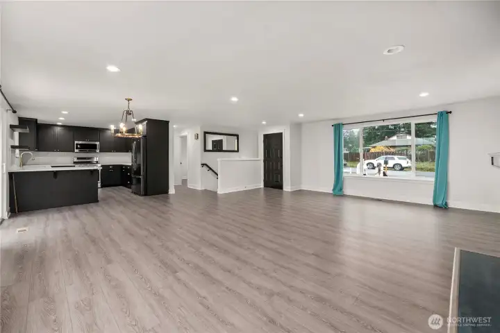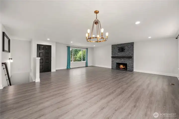 Beautifully renovated rambler with a daylight basement in a prime Puyallup location. Bright main-level living features large windows, new LVP floors, and a stunning stone fireplace. The modern kitchen offers black cabinetry with gold accents, SS appliances, tile backsplash, and open shelving. Relax in the spa-like primary suite with dual vanity and designer tile. Lower-level bonus room could be a 4th bedroom or 2nd primary. Enjoy even more convenience with a brand-new deck that has access to a fully fenced yard, spacious utility room with 3/4 bath, 2-car garage, tons of extra parking for RV, Boat, vehicles, and large shed ready for power provide even more convenience