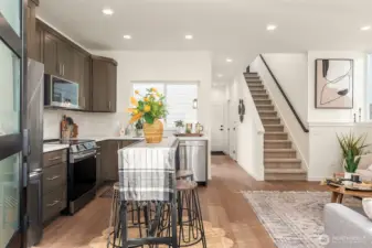 Tucked between Lake Washington & Green Lake, Victory Heights offers the perfect balance of peaceful, residential living and easy access to city amenities. Step through the charming front courtyard into a bright, open-concept kitchen, dining, and living area, with a second private courtyard on the north side of the home. This 2-bedroom home showcases premium finishes and impeccable quality throughout. An attached garage & additional parking pad provide flexible options for cars, bikes, sports gear, or conversion into a home office, gym, etc. A great location, just blocks from Hazel Wolf School, shops & restaurants. Easy access to the Light Rail & Northgate redevelopment mall, including 41 acres of shops & the Kraken practice facility.