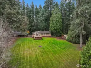 Nestled on 1.7 acres across two private lots, this charming, well-maintained home has been lovingly cared for by the same owner for 30 years. Enjoy thoughtful updates, a large functional kitchen, a home office, and two spacious bedrooms opening to a deck overlooking the property. A cozy wood-burning fireplace and AC provide year-round comfort. Outside features include a large back deck, covered front porch, wood shed, and detached garage with shop and covered tractor/toy space. The fully fenced yard offers ample room for a garden. Quiet, secluded, and a short walk to the beach, yet close to Gig Harbor and Key Center amenities. It is the perfect place to call Home.