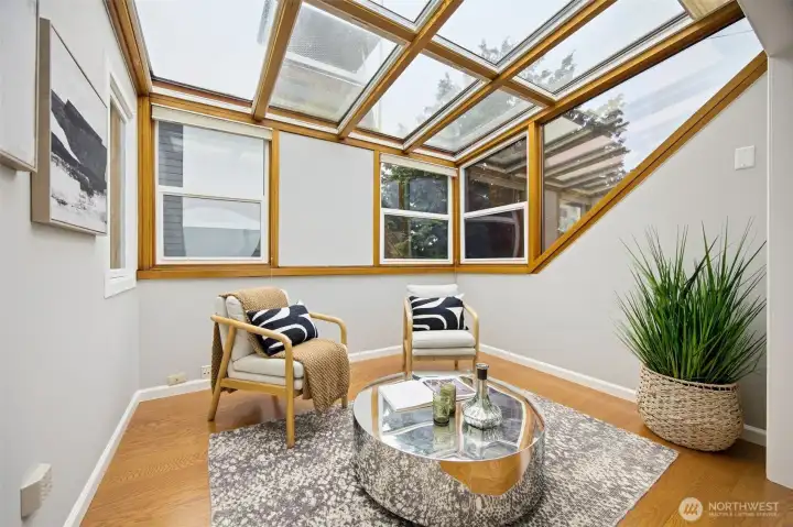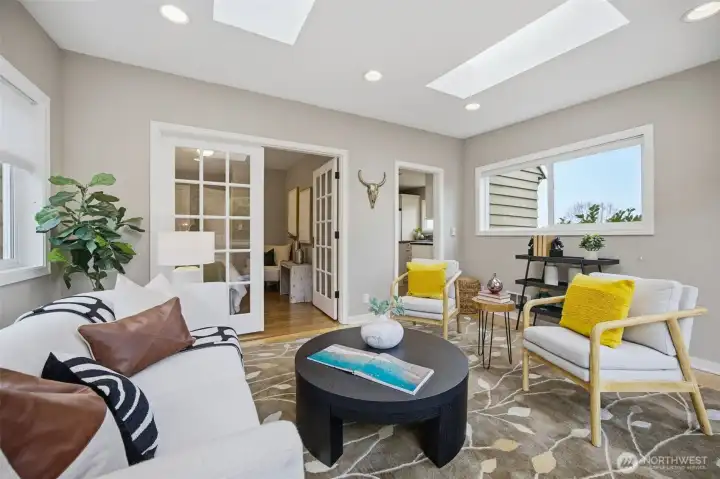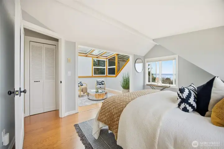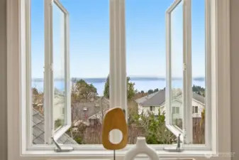 Located on a picturesque street atop Gatewood Hill, stately 1931 VIEW Craftsman seamlessly blends period charm w/ thoughtful modern updates. Enjoy sweeping wireless views of the Sound & Olympic Mtns, along w/ expansive territorial outlooks & a peek of city skyline from its elevated perch. Kitchen features quartz counters, custom cabinetry, butcher-block island, Viking gas range, & Bosch dishwasher. Inviting family room filled w/ natural light from generous windows & skylights, opens to freshly landscaped backyard & large patio. Spacious upper primary offers incredible views, walk-in closet, & its own private atrium. Lower level includes 4th bedroom, W/D, shop & ample storage. Attached single garage, driveway pkg + 2 paved off alley spaces.