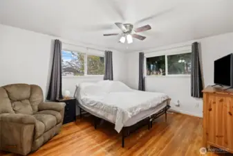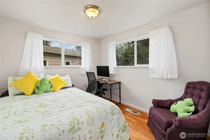 Welcome home to this charming 3+ bedroom rambler featuring coved ceilings and original hardwood floors, plus a cozy gas fireplace in the living room. Spacious updated kitchen with stainless appliances, and dining area that opens to a large covered patio. Three bedrooms and full bath at one end of the home, and another potential bedroom/office with bonus loft at the other end, along with a 1/2 bath. Large, fenced lot provides plenty of space to play, garden, or entertain. Convenient location less than 5 minutes from Costco, multiple grocery stores and restaurants, Lacey RAC, and the freeway for an easy commute.