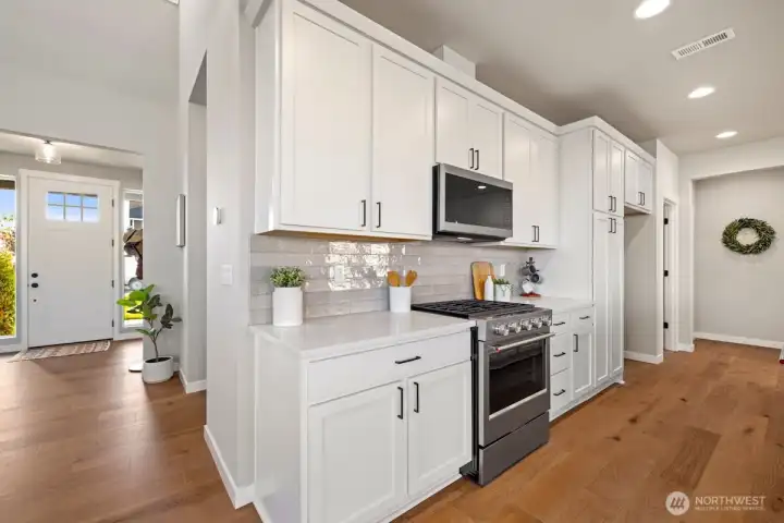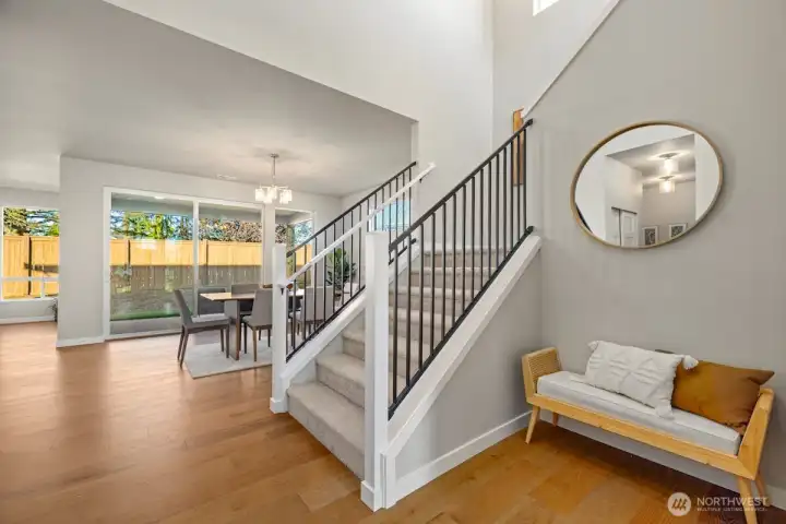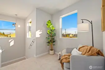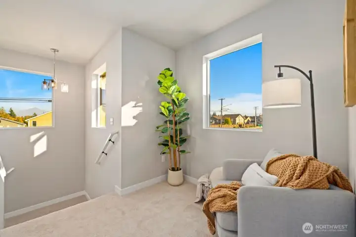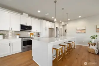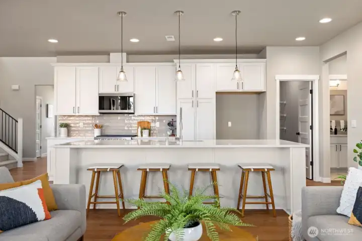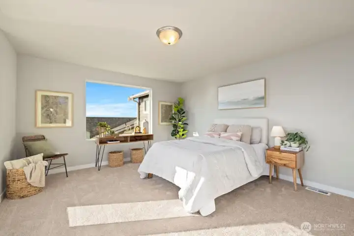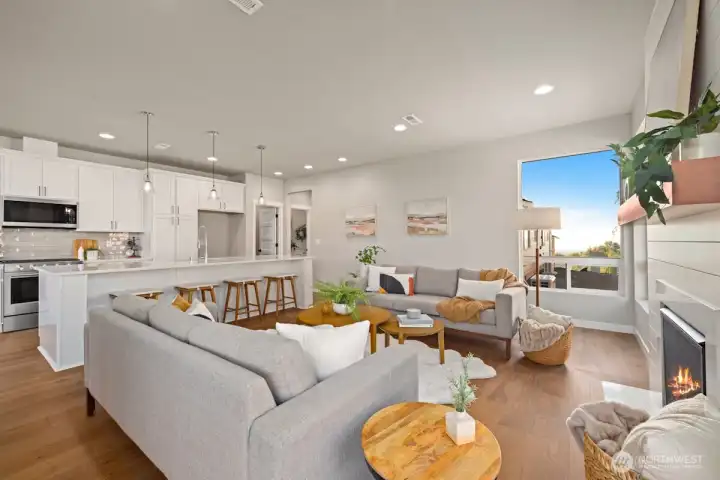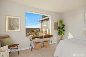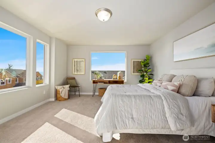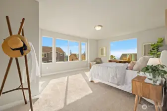 Noble Ridge is an exquisite small view community of just 14 homes that sits high above the bluff offering spectacular views of the Olympic Mountains and the Puget sound with trail access on a dead end cul-de-sac. The RAINIER on lot 1 is a thoughtfully designed 2779 sqft home, with a chef's dream kitchen offering an 8' island with white soft closing cabinets and gorgeous 3cm quartz countertops. The main level offers an inviting great room, office/guest bedroom, and walk-in pantry. Upstairs you’ll find the relaxing owner’s suite complete with a luxurious 5-piece bath, an additional 3 bedrooms, and a versatile loft. This corner lot home has added picture windows to take in the views. It is absolutely gorgeous and move in ready!