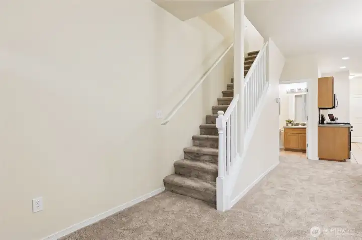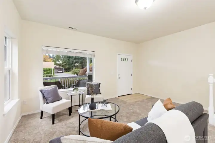 Experience this LOW MAINTENANCE West Oly lifestyle in this well-cared-for Craftsman patio style home of 1678 SF w/3 bedrooms & 2.5 baths PLUS versatile LOFT! Stepless entry to an inviting open-concept layout with high ceilings and flow that makes everyday living effortless. The galley kitchen keeps everything within reach. Sliding doors to a private patio perfect for outdoor dining & relaxing. Upstairs, the spacious primary ensuite, two spacious bedrooms, and loft create room for work, play, and rest. Large utility room & pantry. Enjoy easy-care landscaping and delightful covered front porch. All new interior paint, carpet & appliances. Neighborhood park just a block away. No HOA! 2 car garage. Oly SD too. Comfort and convenience!