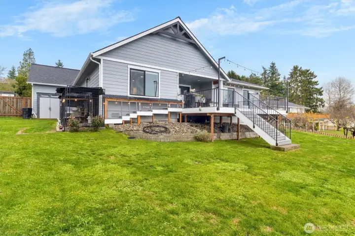Nestled on a quiet cul-de-sac near the Skagit Golf and Country Club, this picture-perfect 2023-built home is designed with you in mind. With 4-bedrooms, 2.25 baths, and a spacious 3-car garage, blending style, comfort, and modern convenience. The eat-in kitchen is the heart of the home, that flows to the living space, backlit by valley & mountain views. 3-bedrooms.(1-oversized) offer ample space with blackout blinds for day sleepers while the primary serves as a private sanctuary with its spa-inspired ensuite and generous walk-in closet. Step onto the oversized deck with your morning cup as you soak in the beauty of the surrounding landscape. Even your furry companions are thoughtfully considered with a dedicated covered run off the deck.