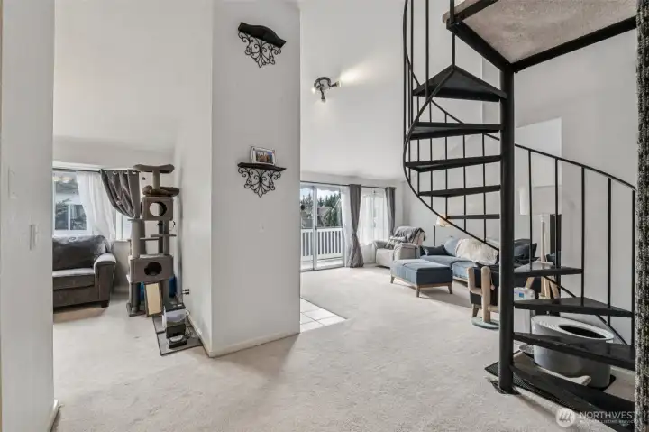 2 bedroom 2 bath top level condo with vaulted ceilings, a loft, and garage in the popular East Hill of Kent! This condo lives large with 1348 sq ft. Large fireplace in the main living area with an oversized slider that opens to the balcony. This kitchen has SS/black appliances, beautiful cabinets, granite countertops and bar seating next to the formal dining room! Bedrooms are located on the main floor and The spiral staircase leads to the loft area with lots of natural light. options for , office, spare room or flex space. This loft also includes an additional storage area The condo comes with a garage and a designated parking spot. Conveniently located close to schools, medical, shopping and restaurants.