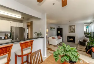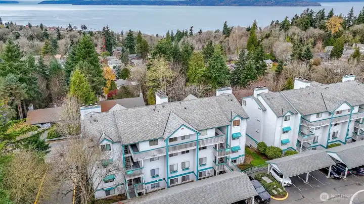 Condo with a view just listed in Redondo Vista. Centrally located, 888 sqft of living space w/ 2 Bedrooms, 1.75 Baths, Large Kitchen w/ Stainless Steel Appliances, Granite Countertops overlooking the dining area. Covered Patio w/ Puget Sound Views, Living Room w/ Wood Burning Fireplace, Large Guest Bed & Bath, Primary w/ dedicated bath. Close to all amenities, Transit, Medical, Office, Restaurants, Schools, Airports, Shopping, Entertainment. Commuters will love the easy access to I-5, I-405, Hwy 167, Hwy 18, Hwy 99 and the Link Light Rail. Designated covered parking spot.