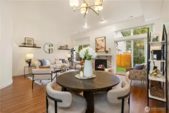 Move-in ready duplex-style condo! This bright 3-bedroom townhome-style condo lives like a single-family home. Soaring 12-foot ceilings and large windows fill the open living space with natural light, while the cozy gas fireplace makes it ideal for relaxing nights at home. The gourmet kitchen offers SS appliances and generous cabinet space. Upstairs features 3 bedrooms including a vaulted primary suite w/ updated bath & nearby laundry. Attached 1-car garage plus 2 extra dedicated parking spaces. HOA dues includes water/sewer. Located in a quiet 17-unit community within the Edmonds School District, close to parks, shopping, Alderwood Mall, Lynnwood light rail station, & easy I-5/405 access. Perfect for a young couple or growing family!