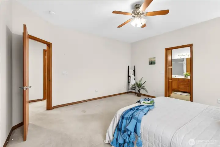 Welcome to this well-cared-for, single-level 3-bed, 2-bath rambler in the heart of Cordata. Vaulted and 9’ ceilings, hardwood floors, and a practical layout make this home easy to live in. The kitchen includes granite counters, cherry cabinets, stainless appliances, and a walk-in pantry. The primary suite features a walk-in closet and an ensuite with dual sinks and a walk-in shower. Fresh paint or new carpet would give the home an updated look, but it has been solidly maintained throughout. Outside, you’ll find a fully fenced backyard, a small wrap-around deck, and an attached two-car garage—all in a neighborhood setting with no HOA. Moments from WCC, Costco, Bellis Fair, medical services, dining, and miles of Cordata walking trails.