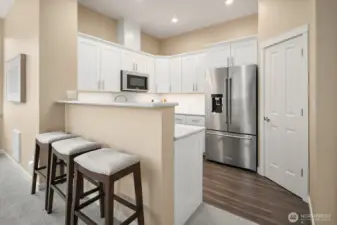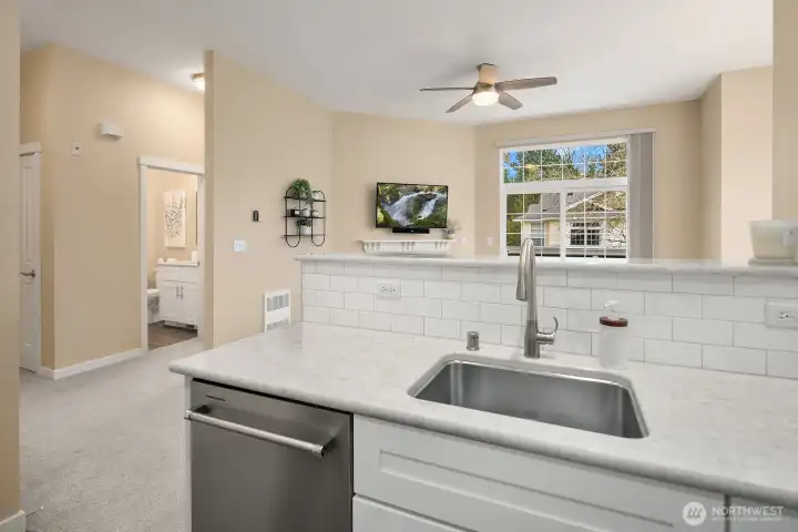 Beautifully remodeled 2-bedroom condo in Sammamish’s sought-after Trossachs neighborhood. This turnkey home features new flooring, fresh paint, and a fully renovated kitchen and baths with modern finishes. The open layout includes a bright kitchen with sleek countertops and SS appliances that flows into the dining and living areas. Enjoy elevated views and abundant natural light from the private balcony, perfect for relaxing or entertaining. The spacious primary suite offers a walk-in closet and updated bath, and the second bedroom provides flexible space for everyday living or a home office. A 1-car garage with extra storage adds convenience. Set in a quiet, well-maintained community close to parks, trails, and top-rated Issaquah schools.