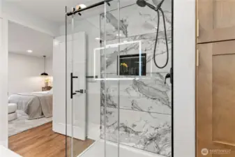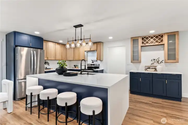 This exceptional, fully updated rambler blends luxury,style,&thoughtful design.Featuring 3 bedrooms,3 bath,&a private office w/powder room,this home welcomes you with a breathtaking chef’s kitchen showcasing custom cabinets,pot filler,premium SS appliances,oversized waterfall island,&elegant under-island lighting,plus a designer bar/wine area.The living room offers a stunning custom e-fireplace w/floor-to-ceiling accent paneling,&the dining room opens to a spacious Trex deck.The luxurious primary suite features a grand walk-in closet,custom accent wall,floating cabinets,lighted mirrors,&a beautifully crafted shower.Additional 2 bedrooms are generously sized.Situated on a beautiful lot near the light rail,this home delivers high-end living.