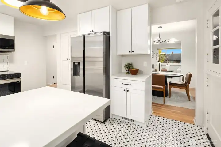 This 3+bedroom, 1.75 bath stunner fuses mid century w/a moody, modern edge. Black-on-black accents & striking finishes elevate every space. A formal dining room anchors the main level, framed by newly refinished original hardwoods & sunlight pouring in. The lower level offers a 3rd bedroom, bath, family room, & dual wine/cold storage—perfect for entertaining or retreat. Outside, the vibe stays bold featuring a gorgeous wood patio for gatherings & large fully fenced yard. New cabinets, appliances, fixtures, floors & fresh paint. All done in a palette that feels refined & unmistakably bold. Minutes to Jefferson golf, easy access to I5—plus walking distance to renowned restaurants, coffee spots, and neighborhood bars. Moody. Modern. Classic.