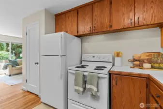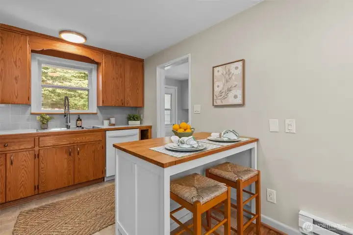 The home you have been waiting for has arrived! Only two owners since solidly built in 1950 and is now ready for you to call home. New plumbing, electrical, popcorn ceilings removed, and fresh paint (all within the last years), forever vinyl siding and impeccably maintained. Three well-appointed bedrooms, a large updated bathroom, separate laundry/utility room, and a bonus family room / WFH space/ den with built-ins. An oak chef's kitchen awaits with a butcher block island w/ storage to get your top chef skills on! Solid hardwoods, cozy wood-burning fireplace, a gorgeous level true PNW yard with native plants, and two storage sheds. All you have left to do is move in. Welcome home!
