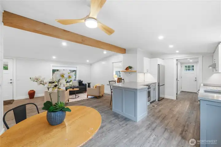 Bright and welcoming 3-bed, 2-bath home offering fresh updates throughout, including new flooring and stylish finishes. The custom kitchen features concrete countertops and new appliances for a modern, functional feel. The metal roof and low-maintenance outdoor yard add year-round ease, and the fully fenced space is ideal for pets, play, or gardening. A spacious front deck offers the perfect spot to unwind or entertain. With its blend of comfort, updates, and affordability, this home delivers exceptional value.