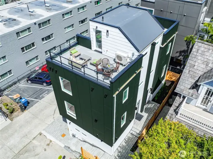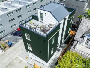 Wake up to sweeping views of Lake Union and the Space Needle from this brand-new Eastlake home, where thoughtful design meets modern efficiency. The open, light-filled layout features warm tones, refined finishes, and a chef’s kitchen with custom cabinetry, quartz countertops, and upgraded stainless appliances. Upstairs, the primary suite offers skyline views and a spa-like bath with radiant-heated floors and frame-less glass shower. Enjoy year-round comfort with high-efficiency systems and a hybrid water heater. Host or relax on the rooftop deck with panoramic views. Includes EV-ready parking. Steps to shops, cafes, parks, and minutes to SLU, UW, downtown, and I-5. No HOA—just elevated living in Eastlake.