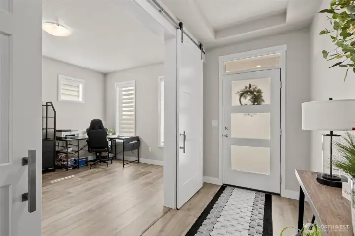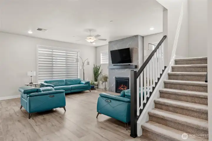 LIKE NEW!! A spacious 4-bedroom, 2.5-bathroom home spanning 2825 square feet, featuring a home office, an open floor plan, and additional living space on the second floor. The main level has an upgraded custom tile fireplace that spans from floor to ceiling. The primary bedroom has grand barn doors leading into the massive en-suite.The property boasts a large 3-car garage ideal for a home gym, mature landscaping with underground sprinklers on irrigation, and a concrete fence for added privacy and RV parking concrete slab. Situated near the charming Country Mercantile, the neighborhood offers scenic walking paths and convenient access to major freeways.