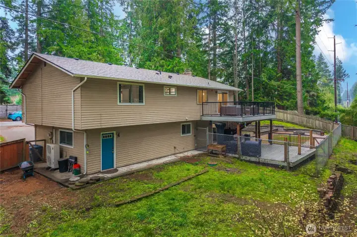 Welcome to your Keyport mini-farm retreat on 1.68 acres. This well cared for split-level home features 3 bedrooms with fresh carpeting, 2 remodeled full baths, a kitchen with eating space and newer stainless appliances, bright dining area, and a spacious living room with fireplace. The lower level offers LVP flooring, a large family room with new fireplace insert, wet bar, and a combined 3/4 bath and utility room. Upgrades include a newer roof, heat pump, electric panel, Andersen windows, and Trex decking. Outside enjoy gardens, fruit trees, fenced & cross fenced pasture, barn, chicken coop, hardscaped side yard w/artificial turf, firepit, and stock tank pool. Designated EV outlet. Near Keyport, Bangor, Bremerton Naval Shipyard, & ferries.