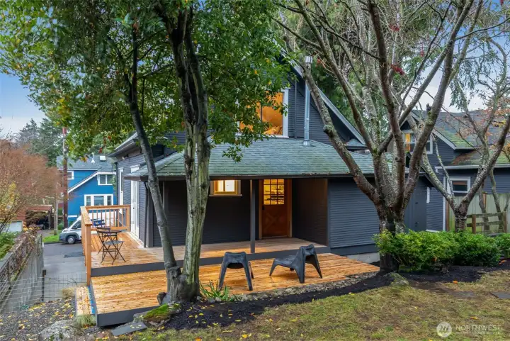 After 35 years, this remarkable Ballard craftsman is refreshed, reimagined, and ready for her next chapter. Wrapped in a stunning new deck, she sits stately on a quiet, coveted street near Salmon Bay park, surrounded by mature trees and a private yard. She’s ready to show off her new self, with over $100k invested in her stunning chef’s kitchen, updated bathrooms, refinished floors, and paint inside and out making her a moody blend of original craftsmanship and modern updates. Her rare daylight basement has 8.5’ ceilings and a separate entrance for flexible use. She even has a hidden, refinished out building ready for your creativity. With a newer roof and sewer repairs, she’s not just moody but practical too.