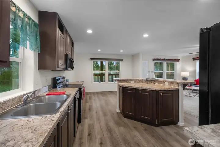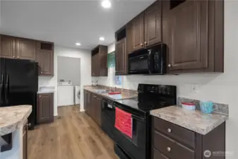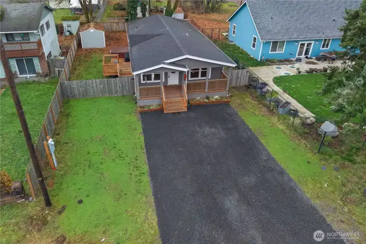 Charming Scott Lake home, nearly new! This 2021, 3 bed 2 bath, 1300 sq ft residence features an open concept living area filled with natural light, complimented by dramatic dark maple cabinetry and granite styled counter tops in the kitchen. Cozy carpeted bedrooms include a primary with walk-in closet and private en-suite bathroom. Laundry room with side entry door that leads out to a spacious garden box. Enjoy the fenced back yard with hot tub ready for year round relaxation! Scott Lake community offering exceptional amenities including golf course, clubhouse, athletic field, lakeside park, swimming area, and boat launch. Located less than 10 minutes to I5 and shopping. Coveted Tumwater School District. A perfect spot to call home!