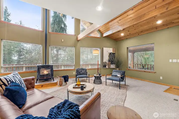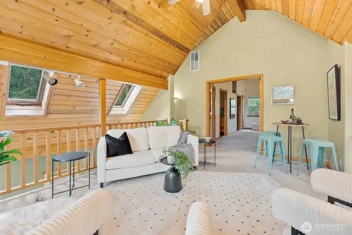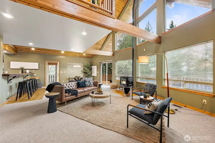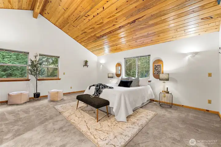 Spectacular lodge-style home tucked in the woods, offering incredible privacy from a covered wrap-around deck. Situated on 2.47 fenced and cross-fenced acres with a small barn. Elegant loft primary suite features two walk-in closets, a spacious bath, and an attached office. The oversized gourmet kitchen boasts abundant cabinetry and a full wall of windows. Brand-new fifty-year roof! Enjoy a gigantic garage with separate workshop, bonus room downstairs, 50-year roof, river rock accents, and plenty of parking for all your toys, surrounded by towering trees.
