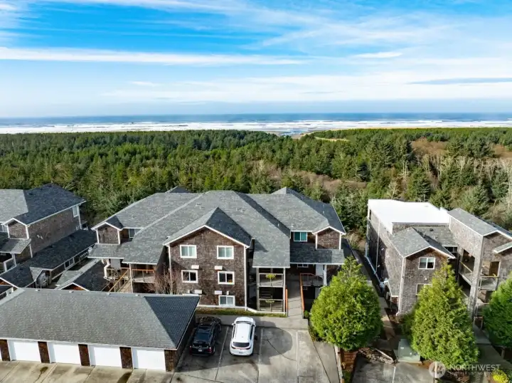 Welcome to Pacific Crest Condos in Seaview! This third floor condo in building B settled in the middle for breathtaking views of the worlds longest beach and beautiful Pacific Ocean. The well laid out 2-bed, 2-bath unit features a primary suite with a private deck overlooking the ocean and an ensuite bath with a jacuzzi tub. The kitchen opens to the living room which has a gas fireplace, creating a warm, inviting space. Enjoy sunsets from the private deck, or storm watch from inside. Each unit includes its own one car garage for parking or storage. Don't miss your opportunity to own this third floor condo with views you will never want to leave.