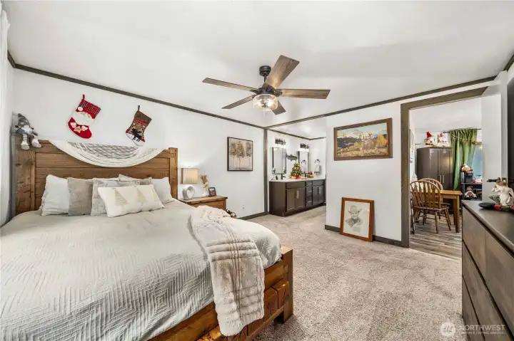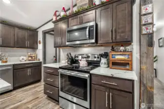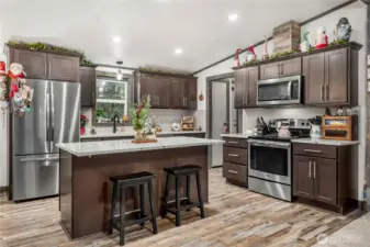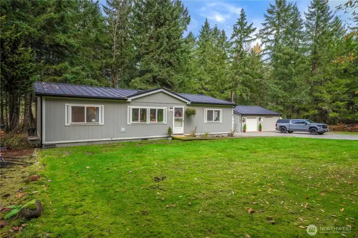 *Escape to your private retreat on serene & tranquil 1.7 acres w/ detached shop!* Come unwind by the fire-pit and enjoy peace & nature at every turn. Conveniently located at the end of the street, this single level home features: *Great Room concept* w/ beautifully remodeled kitchen, center island & breakfast bar perfect for entertaining, espresso shaker styled cabinetry, quartz cntrtps, LVP flooring & SS Appls! Relax in your primary en-suite w/dble sinks, quartz cntrtps, tub/shower combo + WI closet. On the opposite side of the home you'll find 2 good sized bdrms with adjacent bath. DETACHED SHOP has a HUGE Rec Room, ideal for hobbies or a home business. *New metal roof*, RV hook up, plentiful parking & NO HOA! Privacy & convenience await!